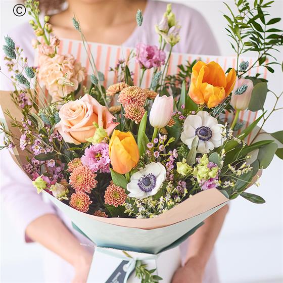 A gorgeous on trend bouquet, crafted by hand by a local florist in a fresh, modern style.