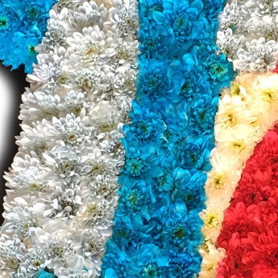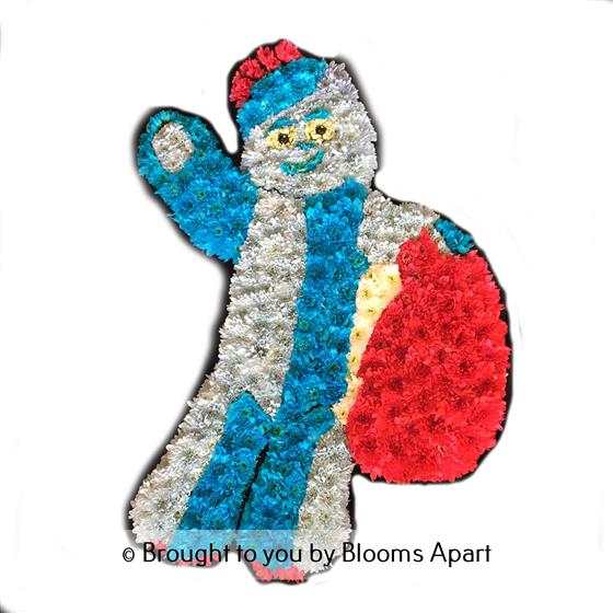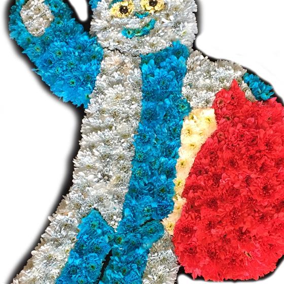 Iggle Piggle floral tribute, made with special dyed chrysanthemums size is 2ft by 3ft,