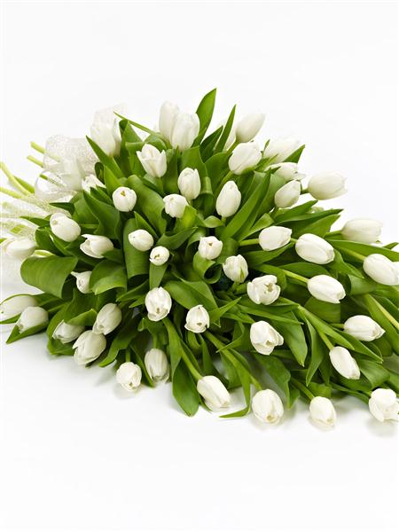 A beautiful arrangement of pure white tulips to create this simple, elegant posy.