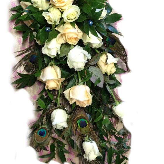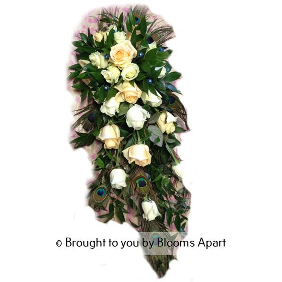 Tear Drop - Peach & White Rose with Peacock feathers